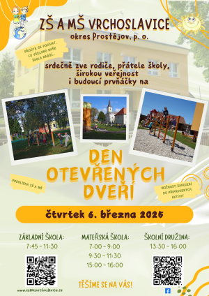 Zábavné odpoledne pro rodiče a děti ze ZŠ a MŠ Vrchoslavice 24. 10. 2024 od 16:00 hodin na školní zahradě